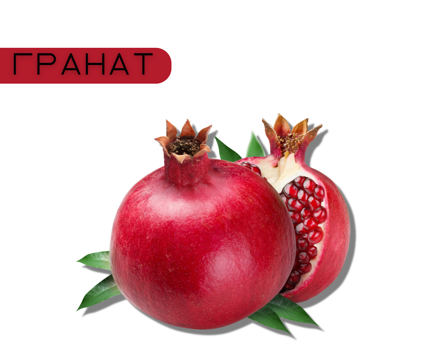 Зерна граната содержат множество витаминов: С, В6, В12, Р. Также высока концентрация микроэлементов: кальций, магний, калий, марганец, фосфор, йод, железо, натрий.